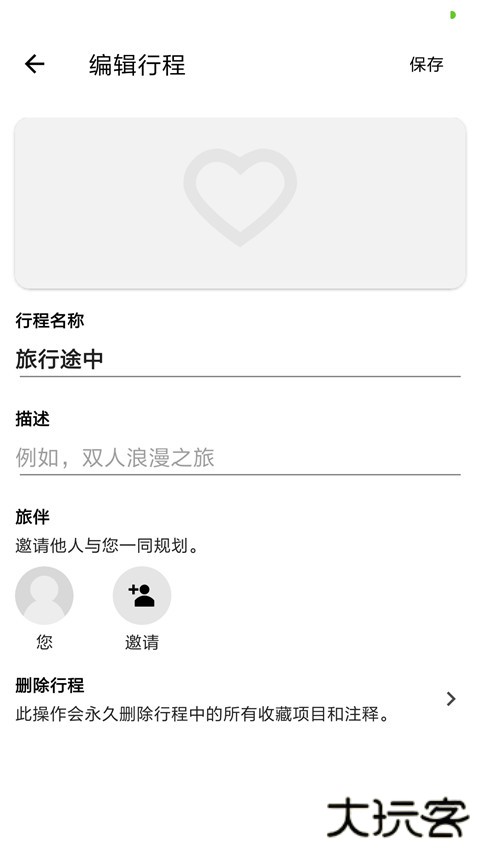 4、通过下拉菜单,您可以编辑行程的名称和描述、组织项目、修改隐私设置、添加合作者,或者删除行程。