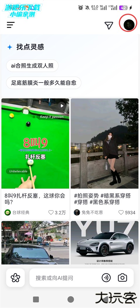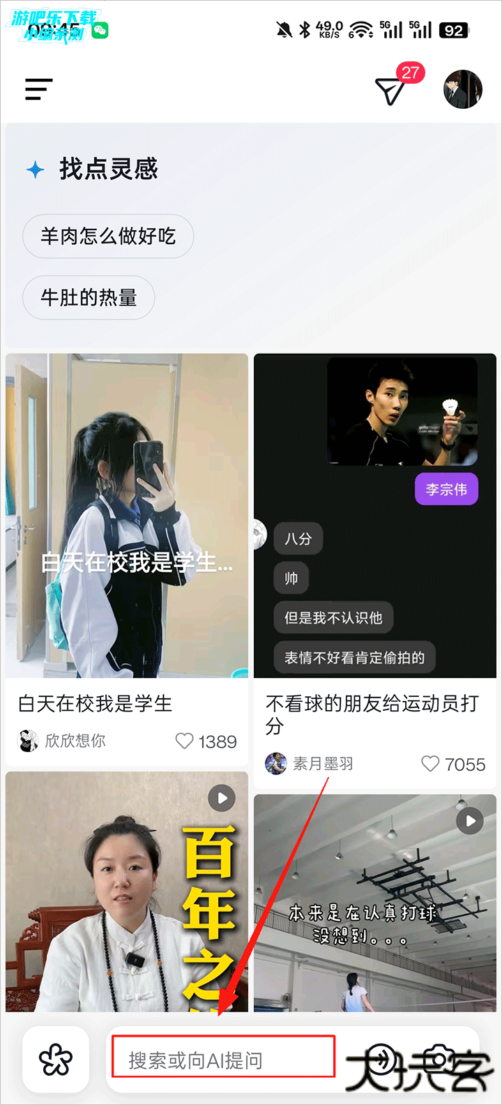 AI 搜索问答:底部搜索框可直接提问(如 “怎么做番茄炒蛋”),AI 即时提供文字答案 + 相关视频