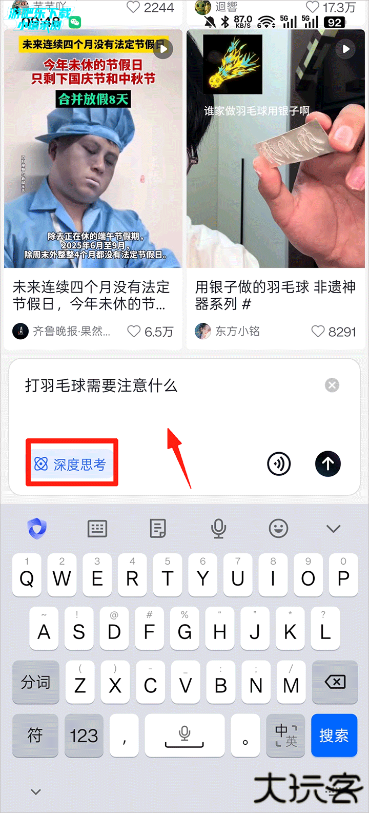 2、还可以启用「深度思考」模式,让搜索结果更可靠。