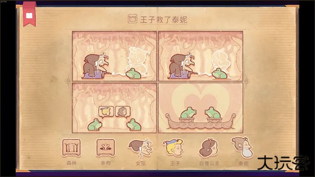 3、进入游戏如图,玩家需拖动字符进入漫画,然后建立一个符合标题的故事;