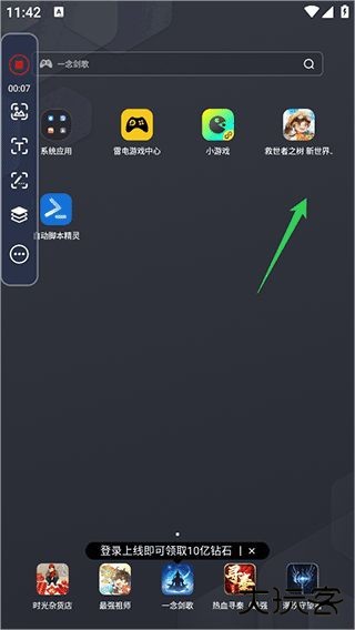 3、开启成功后即可打开游戏将需要挂机操作步骤用app录制下来