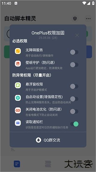 1、不管是挂机还是其它脚本操作,本质都是一样的,用户首先需要先录制脚本,录制脚本前开启app的全部有关权限