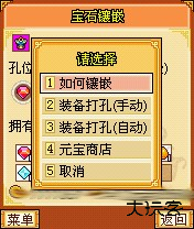 进入宝石镶嵌界面,点击菜单选择装备打孔。