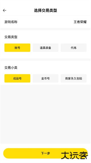 2、选择游戏与交易类型,进入发布页面。