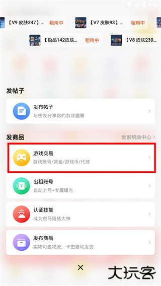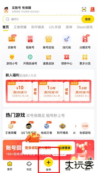 1、打开软件,点击底端的“发布”选项,然后点击“游戏交易”选项。