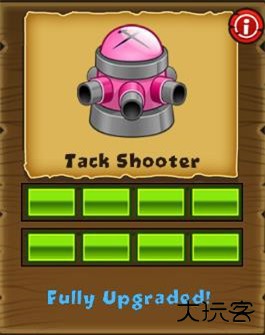 注意:其实图钉塔最长的射程也没多长。 升级方向①:疾速图钉→超疾速图钉→图钉喷雾机→火炎之环。
