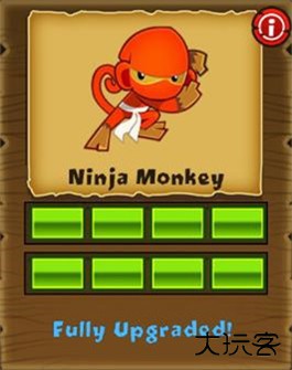忍者猴,超赞,刚开始可以挺过好多关!攻速较快,初期即可攻击迷彩气球。(顺带一提:忍者猴的原型是《特种部队》里的黑白忍者“蛇眼”和“白幽灵”)