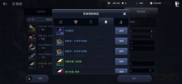 为了更方便寻找想购买的道具,交易所上有各种分类。首先可以透过左边的大分类进行查询。
