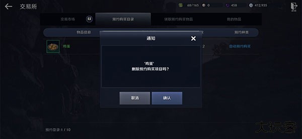 通过预约购买方式购买成功的道具可以通过交易所上方的[领取预约购买物品]中领取。