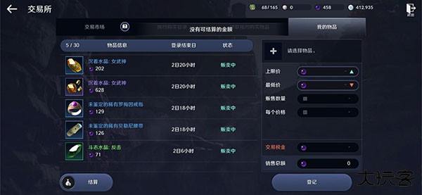 道具的贩卖价格为登录道具的冒险家所输入的价格。购买为当前列表最低价格,无法购买自己登录的道具。