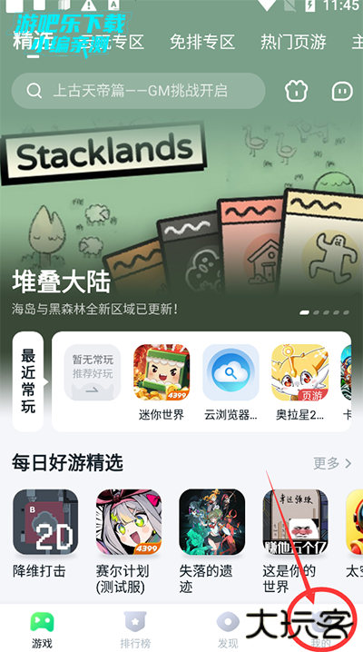 1、在y8l下载安装好870游戏盒官方版,点击最下方的“我的”;