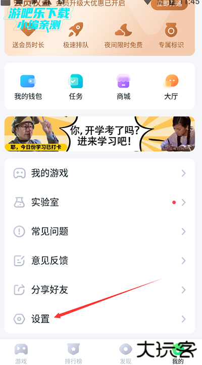 打开 870 游戏盒 / 云游戏 APP,进入 **"我的"→"设置"**