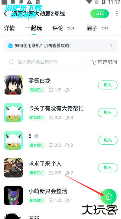 3、可以加入别人的房间一起联机,也能自己创建房间和朋友一起联机,自己创建房间就点击小房子。