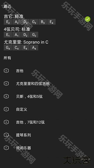 4、选择调弦,可以选择不同的乐器的标准弦音