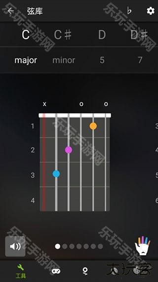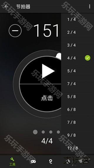 6、点左下角的扳手按钮进入工具页面,这里有节拍器与弦库两个工具