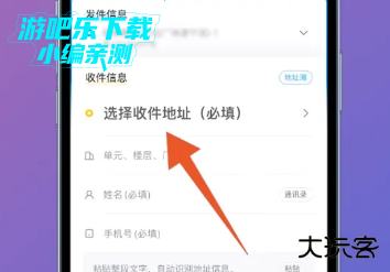 4.进入到填写收件地址的页面后,输入你的收件地址,接着点击下方的地址。