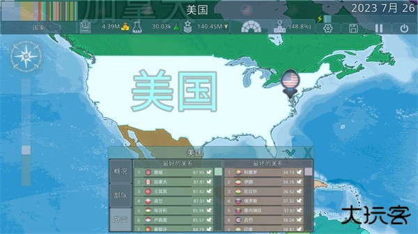 5.社交互动性强:玩家可以加入联盟,与其他玩家进行合作、交流,共同争夺全球霸权,增加了游戏的社交互动性。