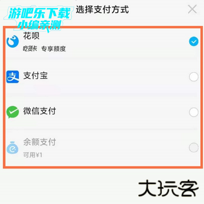 2、可以选择花呗、支付宝支付、微信支付、余额支付。