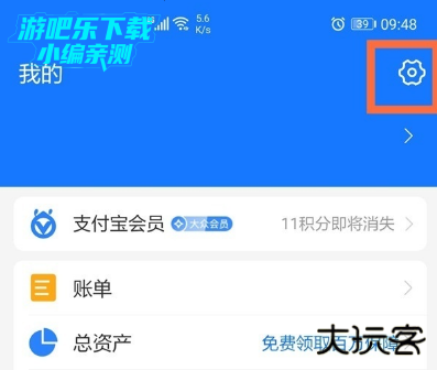 1、在支付宝“我的”界面,点击右上角【设置】。
