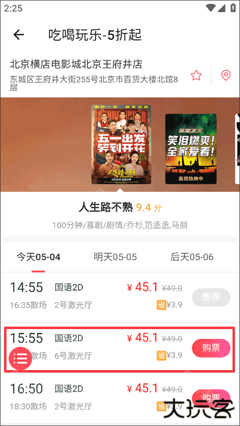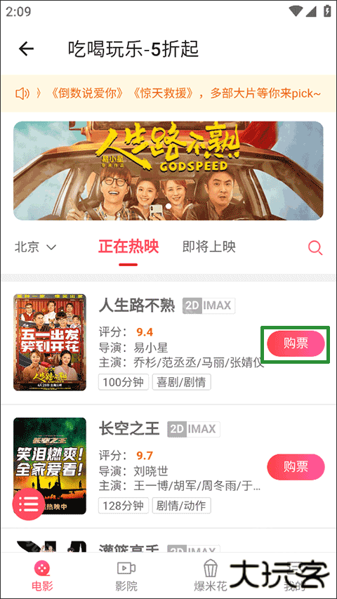 4、在电影界面选择并点击“购票”的选项即可开始买票;