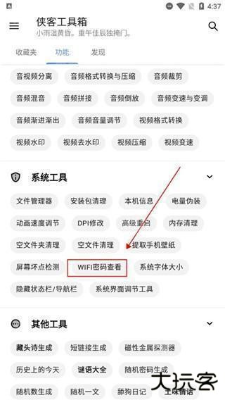 1、打开软件,在功能中找到自己想要用的软件,点击它,这里以系统工具的WiFi密码查看为例。