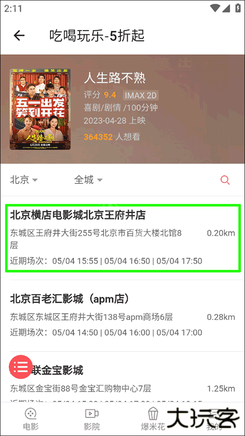 5、接着,在这里选择并点击电影院的位置;