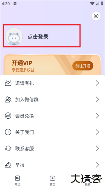 2、点击头像进行登录;