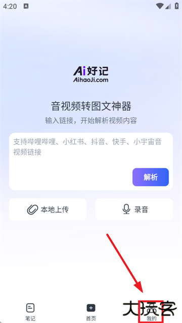 1、首先打开Ai好记app,接着点击右下角“我的”选项;