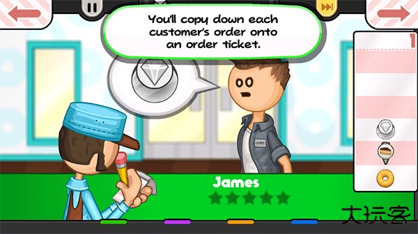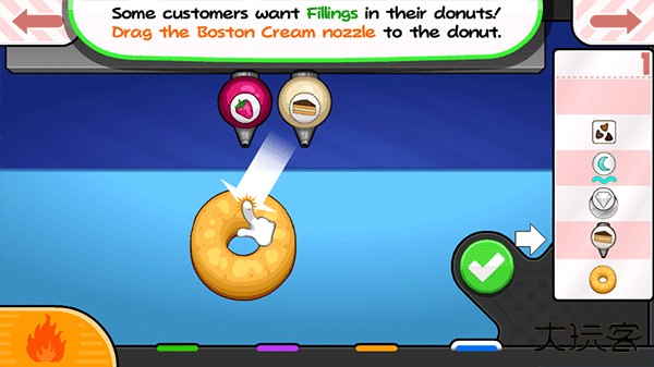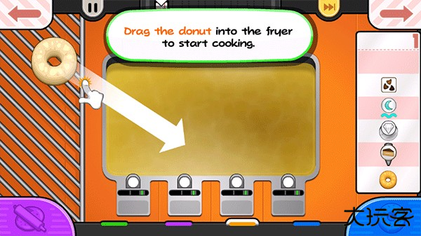 1、首先玩家需要为顾客点餐,当顾客选择了他想吃的品种之后,就可以开始制作相应的甜甜圈