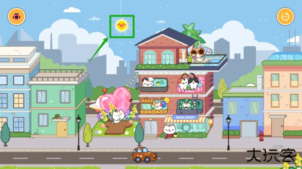1、进入游戏,首页会有图示的太阳图标,点击即可将场景切换成白天/晚上