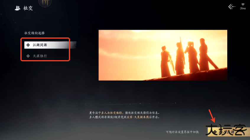 8、选择社交倾向,点击“踏入江湖”;