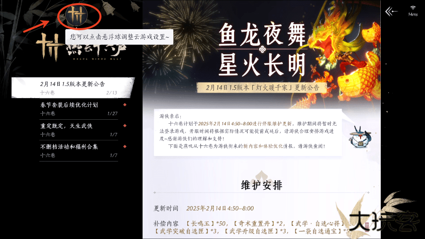 2、点击悬浮球,可以对云游戏进行设置;