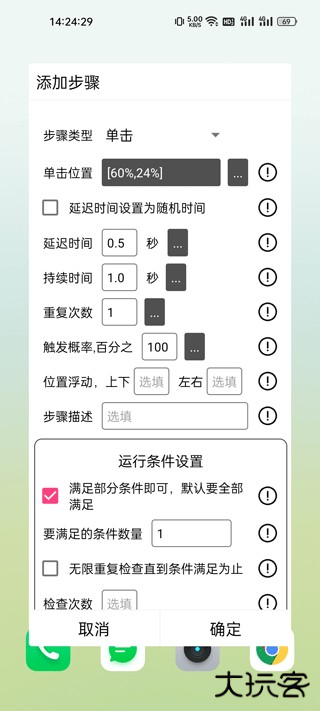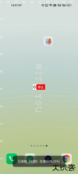 3、出现浮窗后,将触控精灵移至后台,对其需要的应用进行操作,这里有两种流程方法,一种是比较简单的录制功能,一种是比较复杂的手动进行添加步骤,小白用户推荐第一种方案,这里也是简单介绍第一种使用方案