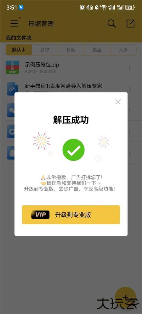 3、只需要几秒钟您就可以让手机的压缩文件解压。