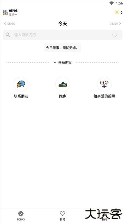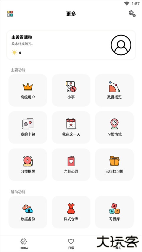 2、今天要坚持的习惯会单独呈现在 TODAY 页面中,轻轻一点图片即表示完成该习惯的打卡;