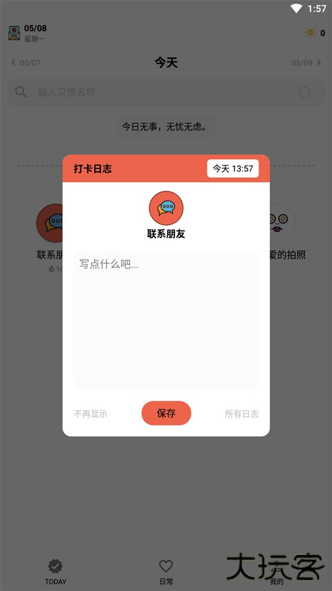 1、不同的习惯都能选择性的记录,每一个习惯功能都提供了记录功能;