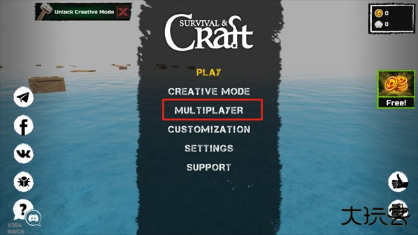 1、打开木筏求生联机版游戏,点击【MULTIPLAyER】进入多人游戏