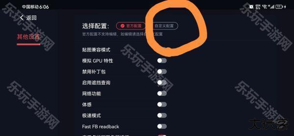4、蛋蛋模拟器支持自定义配置,官方配置以骁龙888处理器为准,不同处理器可能需要微调设置。一般来说默认能玩而且流畅可以不调,如果卡顿或者闪退,那么需要自定义配置。