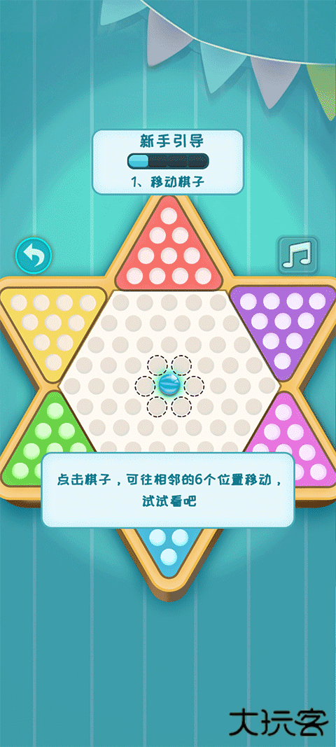 1、点击棋子,可往相邻的六个位置移动;