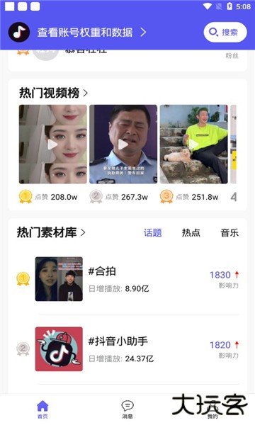 3、往下拖动的话,软件还提供了热门素材和视频内容;