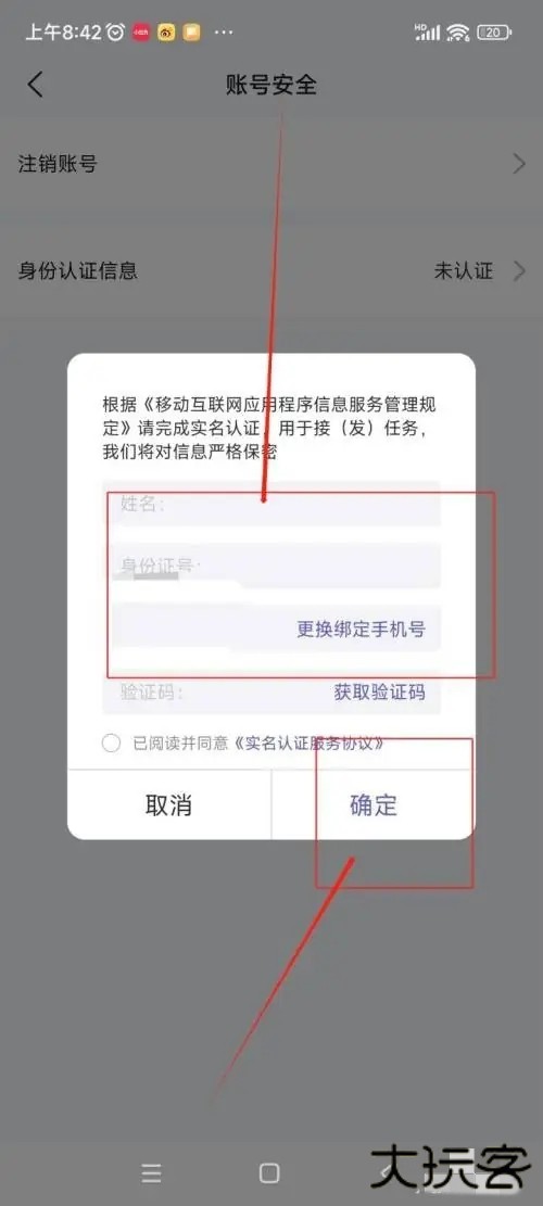 输入姓名、身份证号、验证码等信息,点击确定即可。