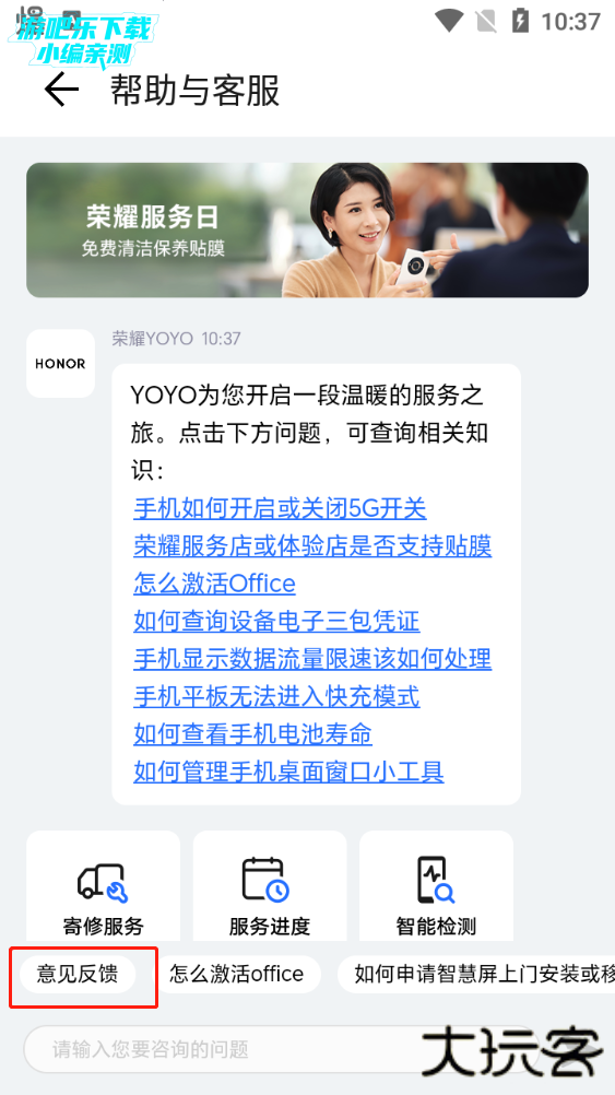我的荣耀App集品牌资讯、玩机技巧、售后服务、会员权益于一体。亮点包括7*24小时在线客服、便捷服务中心查询、智能设备检测等贴心服务。新增俱乐部校园/同城栏目,优化内容推荐,更有视频维修指引,省心安心。