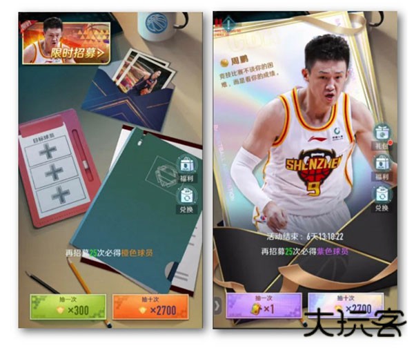 3、大量球星等待你的收集,组建属于你的全明星阵容,每日免费抽卡!