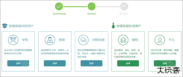 选择与您适合的账号类别后,进入下一步。