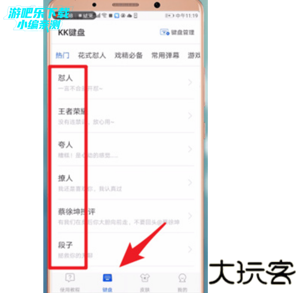 4.< 键盘 > 张大仙、剑仙、蓝烟都在用的王者荣耀定制键盘!听到王者峡谷的召唤了吗……组队、求带、怼人,10000+语料,一键上屏。 横屏自适应,键盘位置、大小、透明度可调。