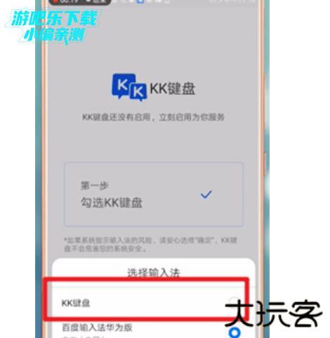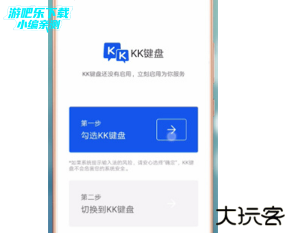 1、打开kk键盘app,根据设置引导,先启用KK键盘,再切换到KK键盘;