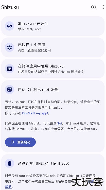1、打开shizuku软件,并且等待该软件识别手机型号。