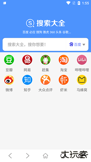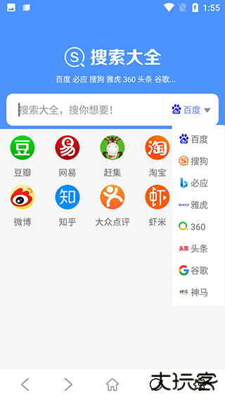 2、软件首页拥有百度、搜狗、必应等多种搜索引擎,用户可以随意切换;