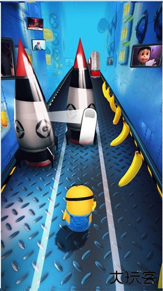 3、黄色小胶囊可爱至极,玩家可以使用跑酷中收集到的香蕉,给它们更换不同的服饰和装备。在游戏的开始界面,本作采用了和《会说话的汤姆猫》一样的设定,你只要触摸小胶囊身体的各个部位,它就会做出各种不同的反应,来逗你开心。
