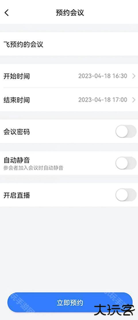 2、设置好会议的开始和结束时间,点击立即预约。